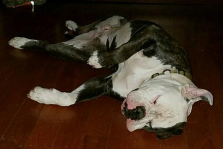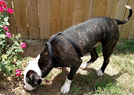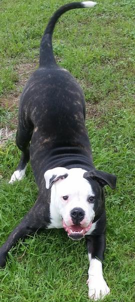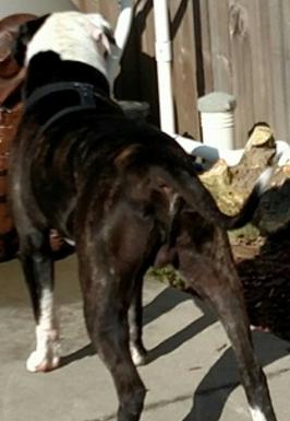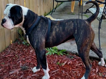 Reaper is my biggest dog! He is a unique reverse brindle and is absolutely stunning. Reaper goes to work with his Daddy almost everyday. He is such a loving and easy going boy. We are so excited to have Reaper in our breeding program, we expect BIG things from Reaper this year.