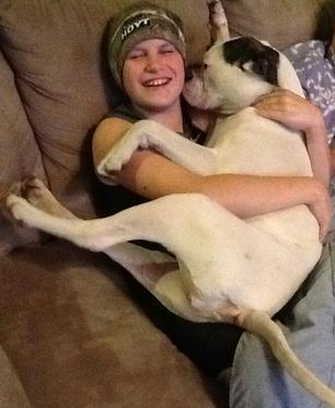 We can't begin to express how happy we are with Monty. He's a great big teddy bear. He gets along great with our other two dogs, a boxer (his best bud) and miniature poodle who he never rough houses with but is very gentle with him. His favorite person has to be our daughter Lorynn (she's in the pic with him by the lake). He is so curious about everything and everyone and just loves being around people. All of our family and friends absolutely love him too. Thanks again, we can't imagine our lives without him, he truly is a blessing.
