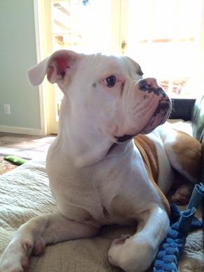 Alicia was so helpful with helping us with our new puppy. We had been watching their web site for over a year before we got our bulldog. The day that I went to see the puppies Alicia had the runt of the litter in her hands. As soon as I saw her I new she was the one. Alicia kept us informed on the growth process of the puppy weekly. To this day Alicia will follow up with us about Sadie. Now our baby is not a baby anymore, she is 60lbs and almost 8 months. Sadie loves to ride, in the Tahoe she chases the windshield wipers and in the boat she is the captain. Sadie gets so excited when you sing to her, that tail just starts wagging. My son and Sadie are best friends. My son plays football and Sadie loves to juke right along with him. Sadie is such a great and sweet dog. Thank you Alicia!