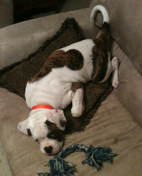 After the loss of our pit bull, Dahmino, in March of 2015, our home wasn't the same. My husband then decided that we should get an American Bulldog. I immediately started searching online for a breeder. I came across your website and saw the picture of Savage, and fell in love.