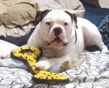 Bowser came into our family a few months ago and has been the most amazing dog we could have ever asked for. My 6 year old son looks forward to coming home from school everyday to wrestle in the yard with him. He has also made a huge impact on our other family dog. Before bringing Bowser home, he was lonely and just didn't have much personality. Now the 2 of them are best friends and are inseparable! Bowser is growing by leaps and bounds and is so well behaved and very healthy!! I would definitely recommend Wills American Bulldogs to anyone I know.